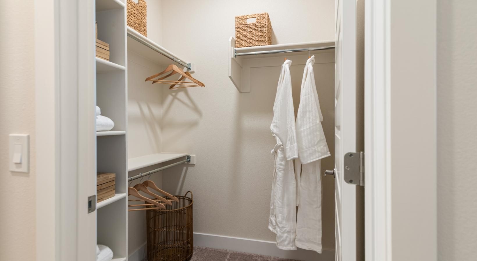 • a closet with robes and shelving